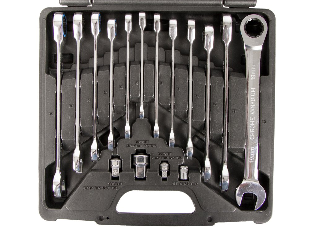 Sada 12 ks profesionálně zpracovaných ráčnových klíčů.