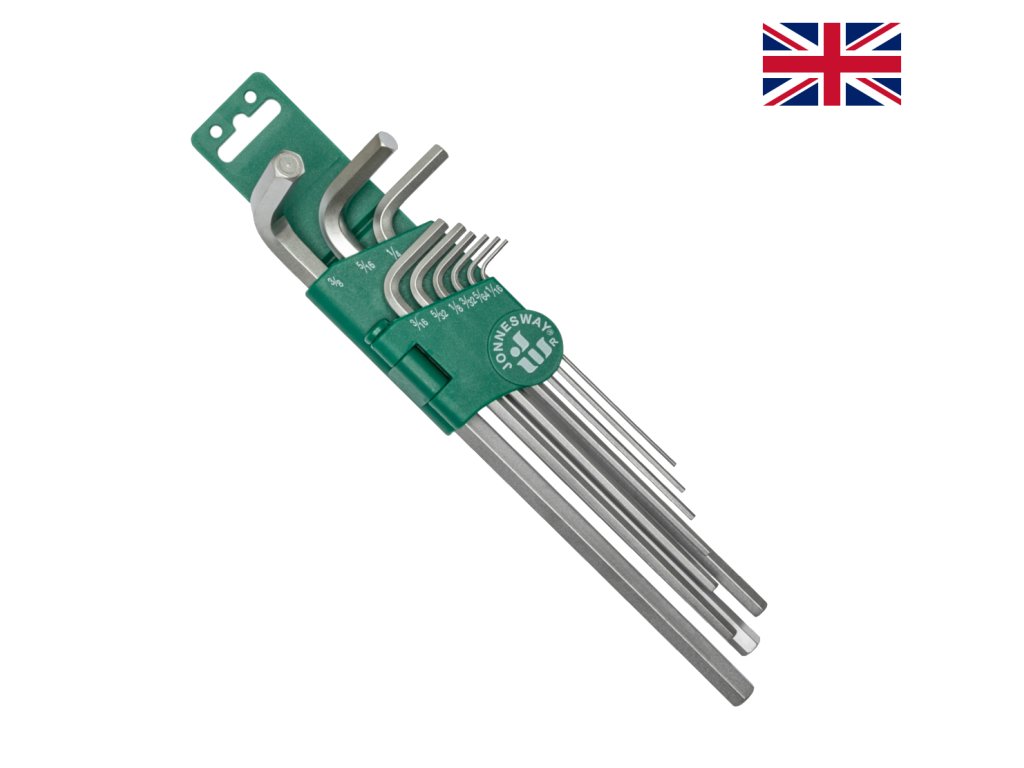 Sada obsahuje následující velikosti: 1/16", 5/64", 3/32", 1/8", 5/32", 3/16", 1/4", 5/16", 3/8"
