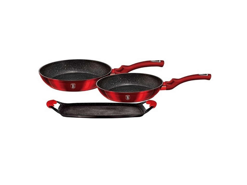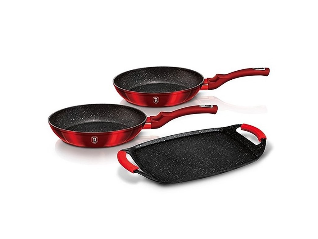 Sada pánví a grilovací desky s mramorovým povrchem 3 ks Metallic Line Burgundy Edition