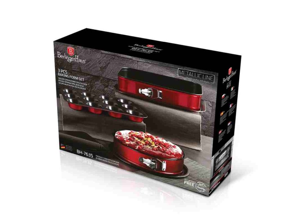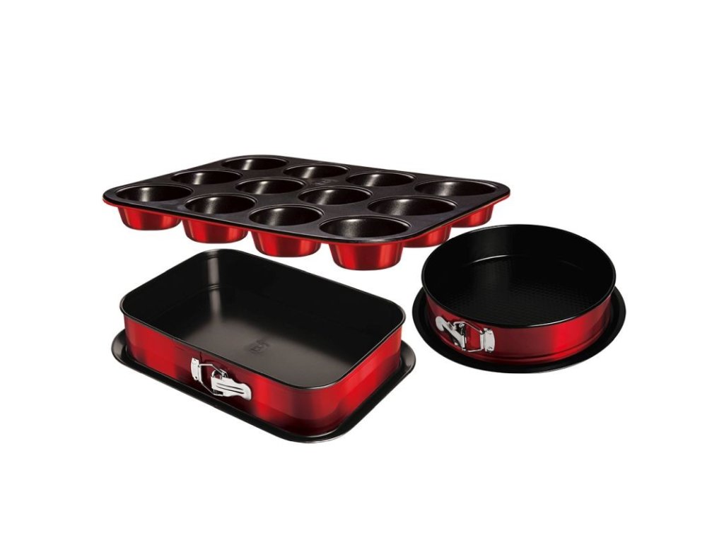 Sada pečicích forem s titanovým nepřilnavým povrchem 3 ks Metallic Line Burgundy Edition