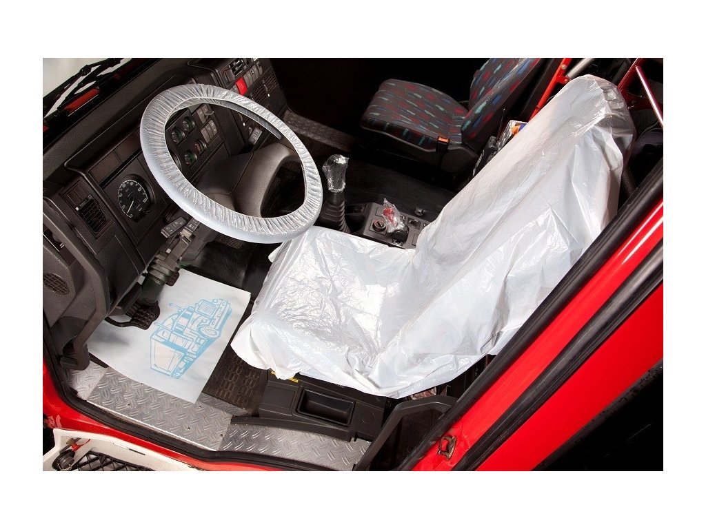 - ochrana sedačky, ochrana koberce folie, ochrana volantu s gumičkou, ochrana řadící páky a ochrana ruční brzdy