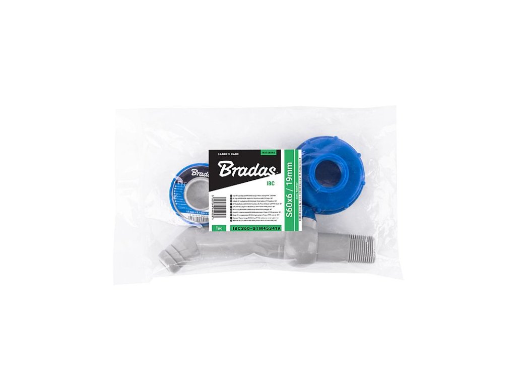 Sada - PP kohoutek 45° s připojením IBCS60x6 pro 19mm hadici s PTFE páskou