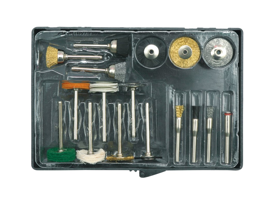 Sada 17 doplňků k doplnění základního vybavení rovné brusky. Umožňuje rychlou, snadnou a hospodárnou práci. Příslušenství umožňuje přesné zpracování malých prvků. Vhodné pro brusky s otvorem nástroje 3,2 mm.