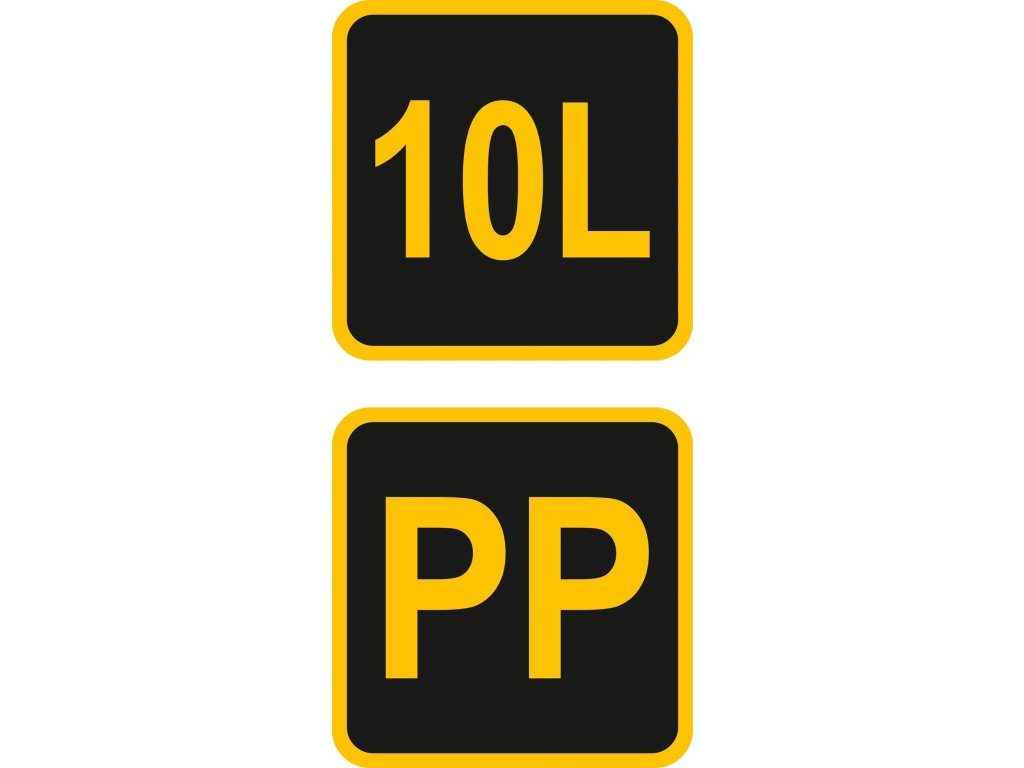 Polypropylenový kbelík s objemem 10l a rozměry 41,5 x 22 x 17,5 cm. Je opatřen válečkem pro vytlačování nečistot z hladítka a uvnitř je opatřen separační mřížkou.