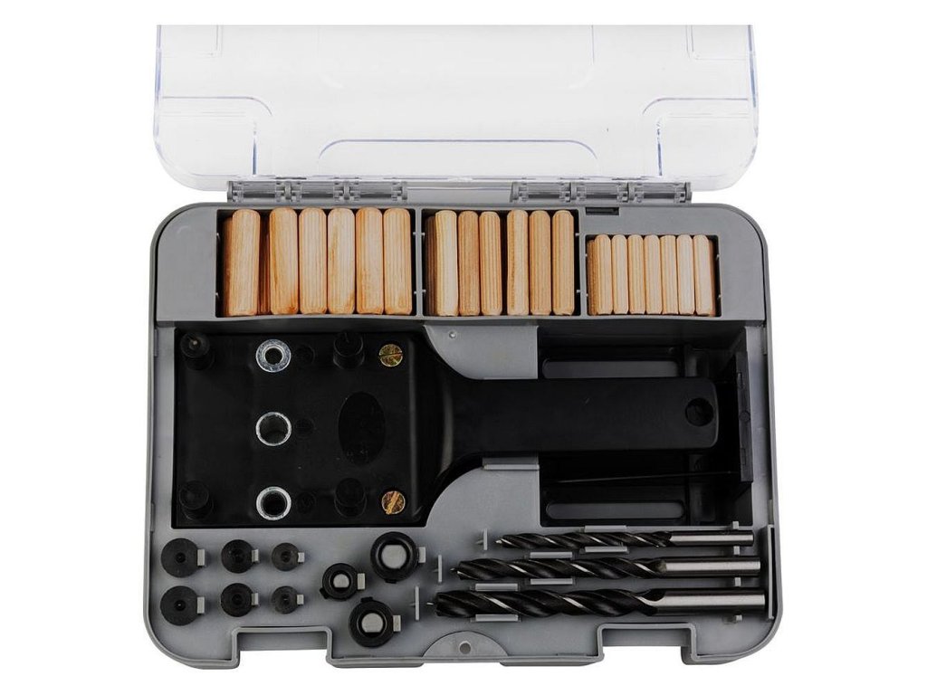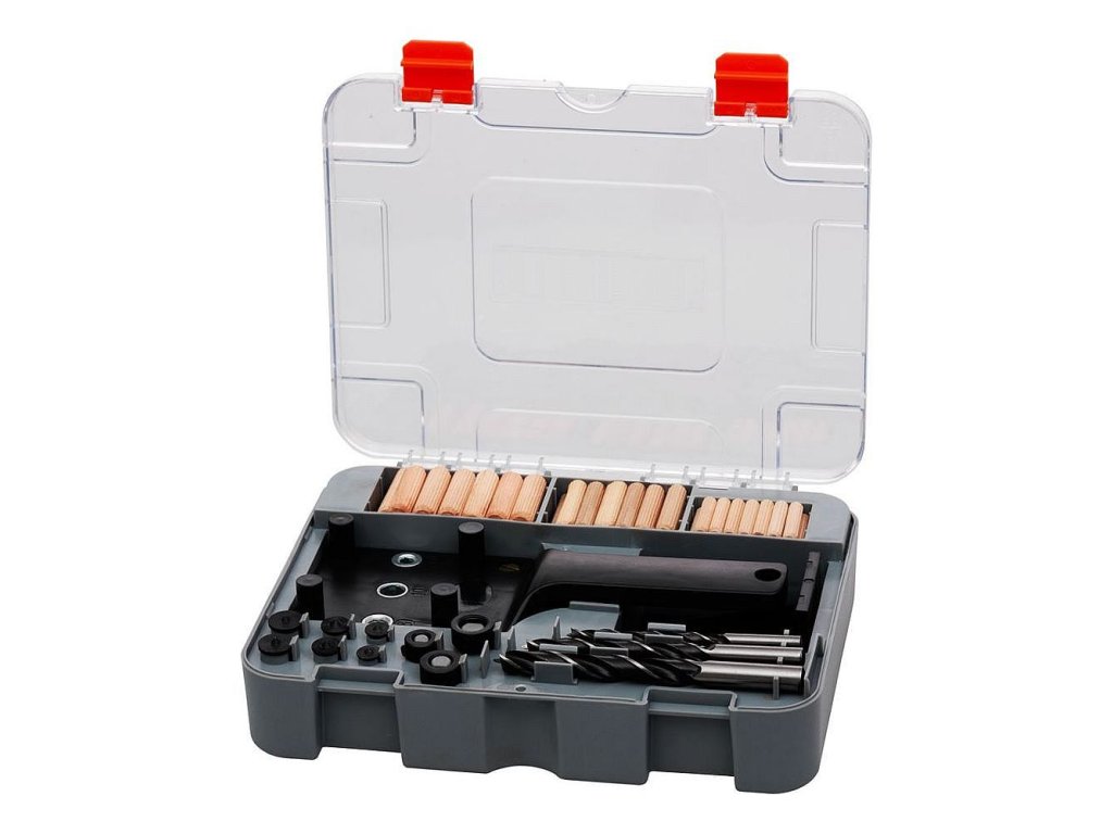 Tato 83 dílná kolíkovací sada umožňuje snadné a rychlé vrtání a montáž kolíků, čímž zajišťuje rovné a kvalitní spojení dílců.