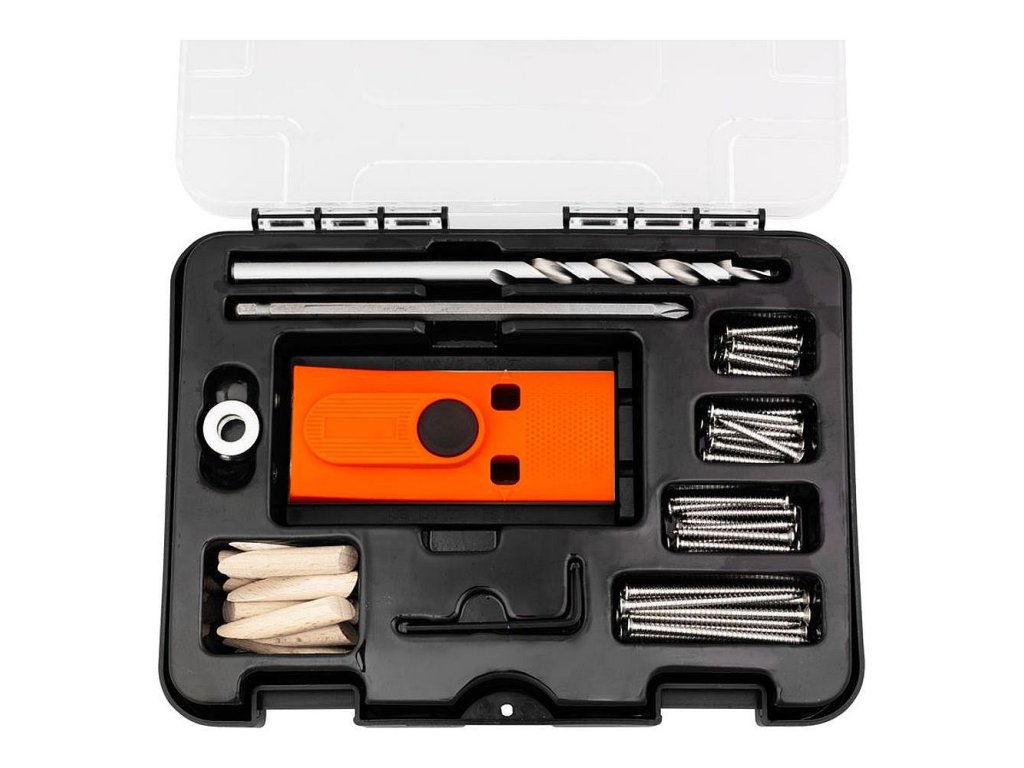 Tato 55 dílná sada je navržena pro vytváření přesných a pevných šikmých kolíkových spojů, díky čemuž je práce rychlejší, jednodušší a bezvadná.