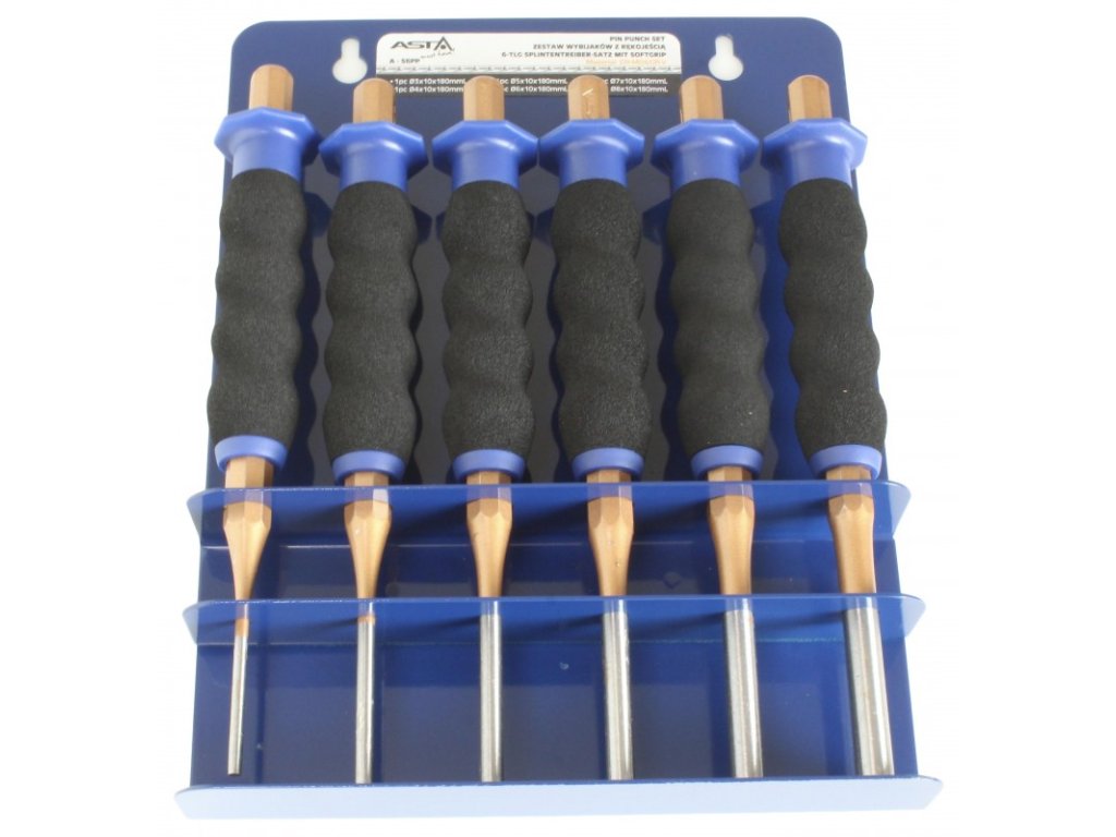 Praktická sada 6 kusů průbojníků průměru 3-8 mm s kovovým nástěnným držákem - ASTA A-S6PP.