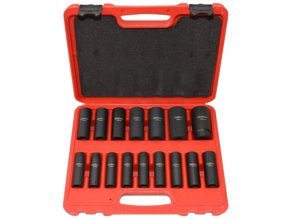 Šestihranné kované - úderové hlavice, prodloužené, vodicí čtyřhran 1/2", rozsah 10-32 mm, chrom-molybdenová ocel, plastový kufr, 16 ks – Genborx