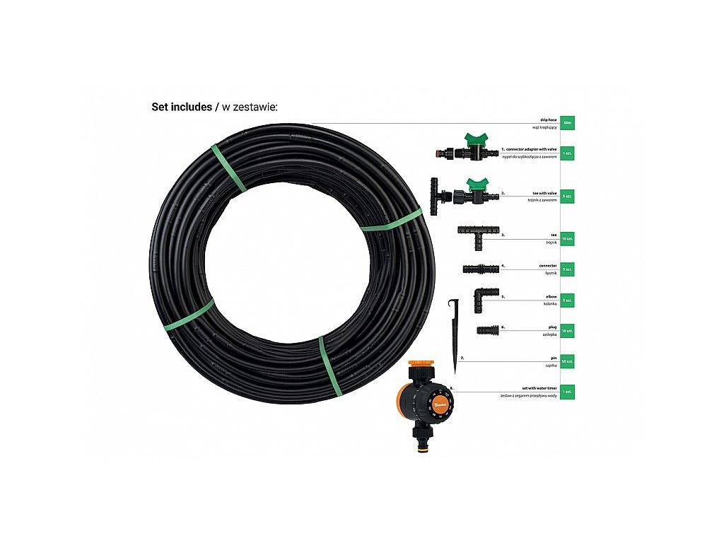 Sada s kapací hadicí Water Flow Drip, 50m s časovačem průtoku vody