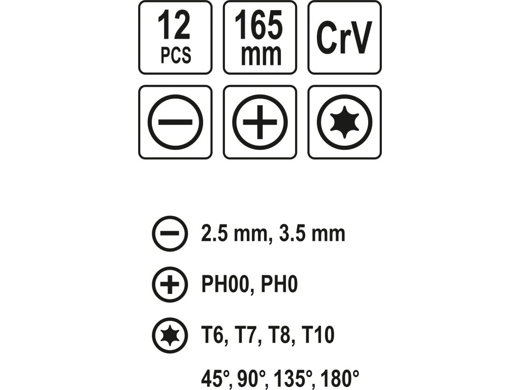 Nástroje délky 165 mm jsou zhotoveny z CrV oceli, s ergonomicky tvarovanými rukojeťmi z dvousložkového plastu.