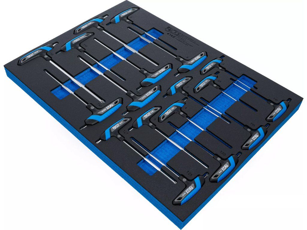Sada šroubováků s T-rukojetí ve výplni do dílenského vozíku, 18 ks - BGS