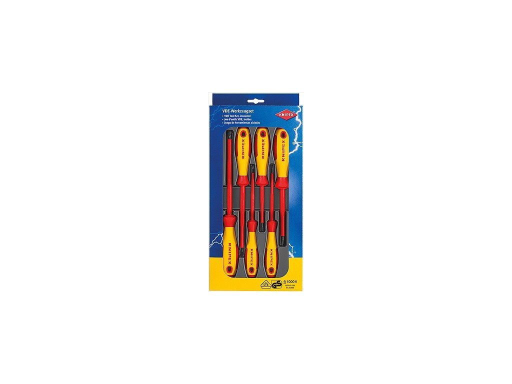 6dílná sada VDE šroubováků je určena pro bezpečnou práci na elektrických zařízeních pod napětím do 1000 V. Vhodná pro profesionální elektrikáře i údržbu.