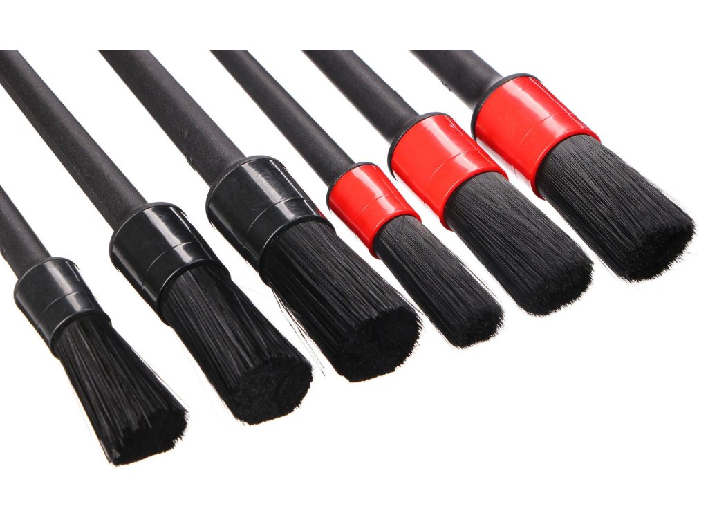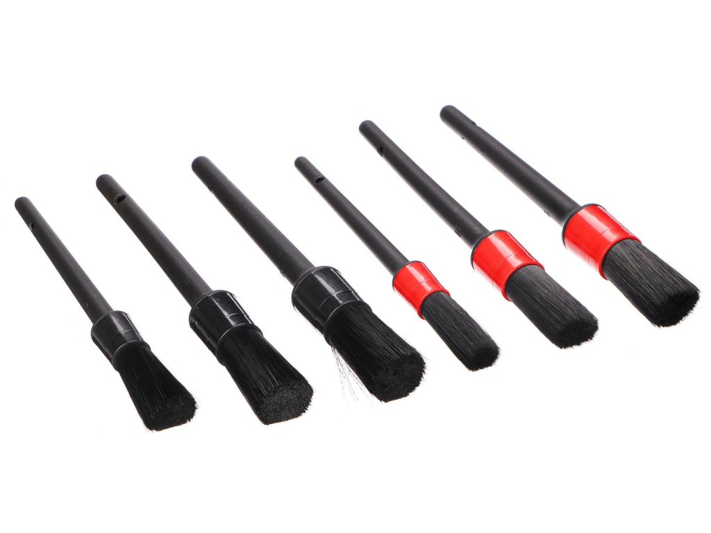 Šestidílná sada precizních štětců různé velikosti a tvrdosti pro čištění interiéru automobilu.