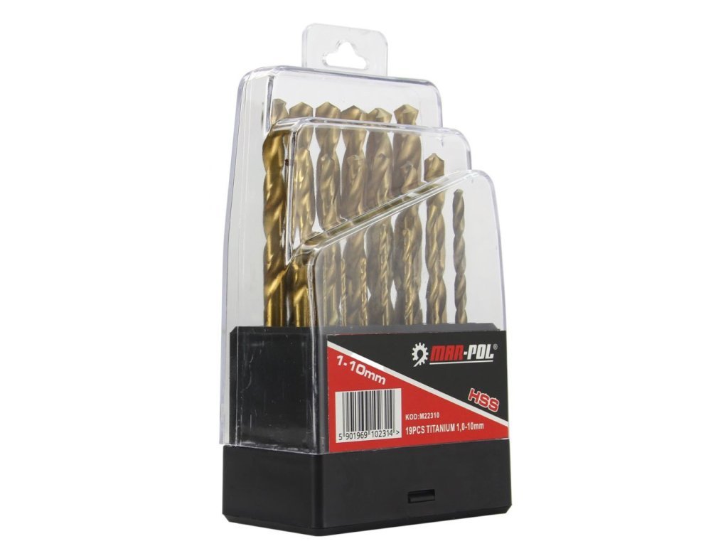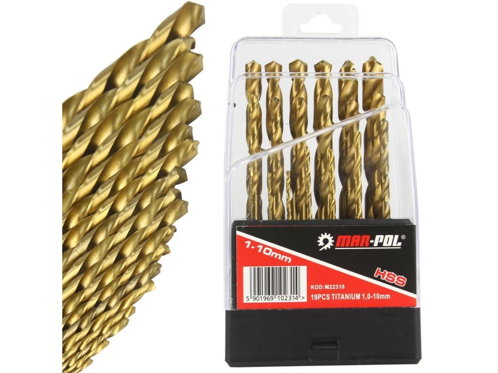 Sada titanových vrtáků na železo HSS 1-10mm 19 ks MAR-POL