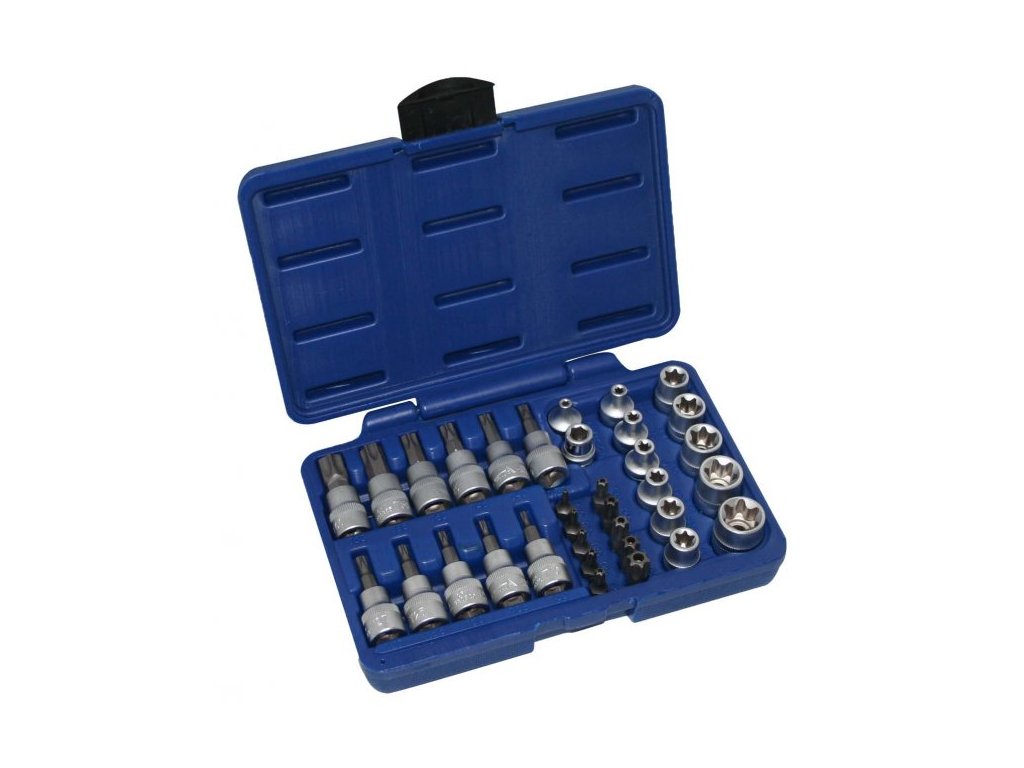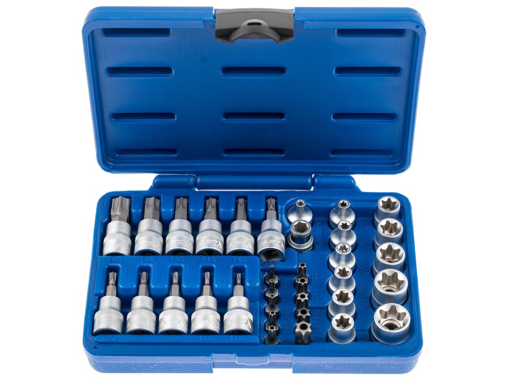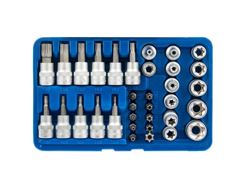 Sada TORX - nástrčné a zástrčné hlavice a bity 3/8", různé rozměry, 34 ks - ASTA