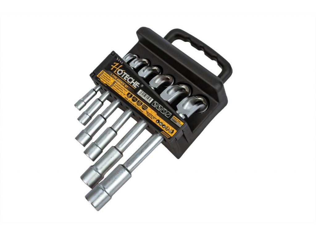 Sada šesti trubkových klíčů ve tvaru L vyráběné značkou Hoteche. Velikosti těchto klíčů jsou 8, 10, 12, 13, 17 a 19 mm. Délka je od 120 - 215 mm s šestihranným nástrčným klíčem.