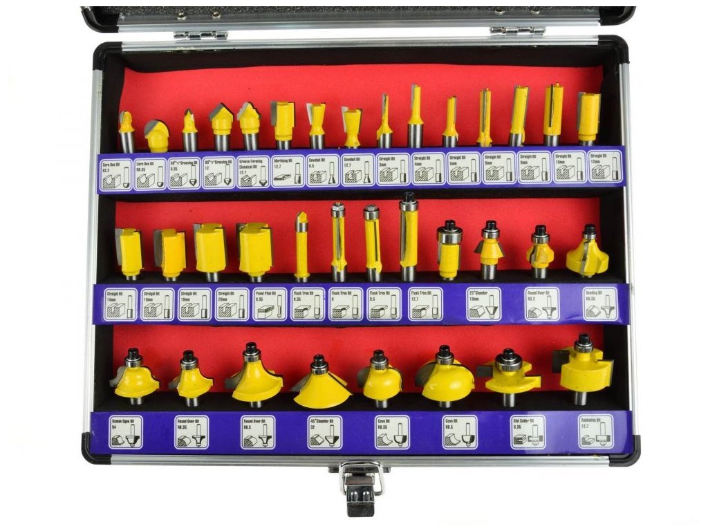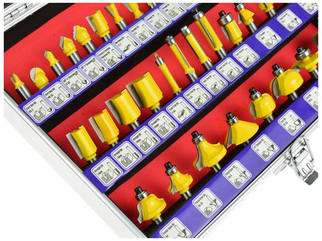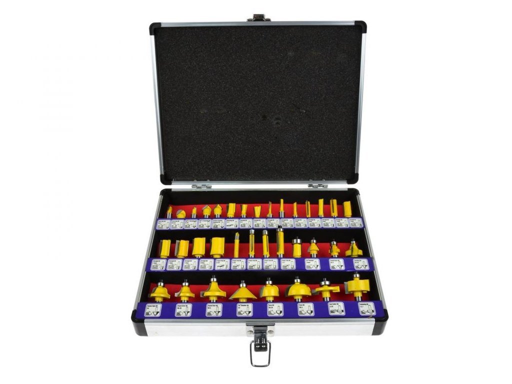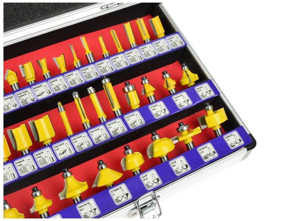 Sada 35 dřevoobráběcích fréz umožňuje přesné zpracování materiálu. HSS rychloupínací stopky umožňují použití fréz pro zpracování masivního dřeva, dřevotřískové desky, MDF a jiných materiálů na bázi dřeva. Použitá ložiska snižují valivý odpor, takže frézy jsou ideální pro formování kulatého materiálu. Celá sada je umístěna v praktickém kufru, kde každá frézka má svůj vlastní úložný prostor.
