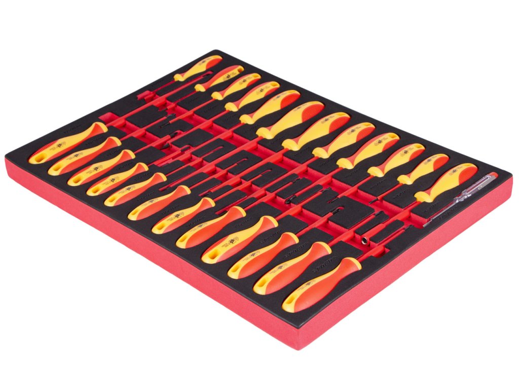 Sada VDE šroubováků ve výpni do dílenského vozíku, 25 ks - AHProfi