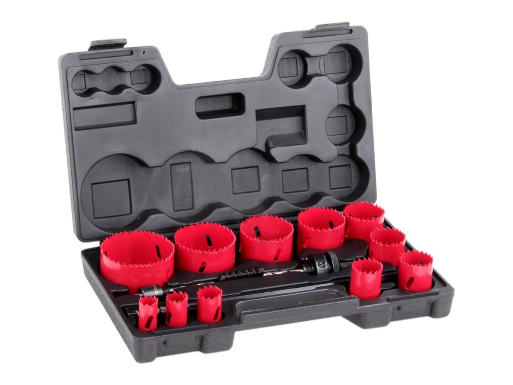 Praktická sada vrtacích korunek s unašeči s kulatou stopkou a Hex zakončením.
