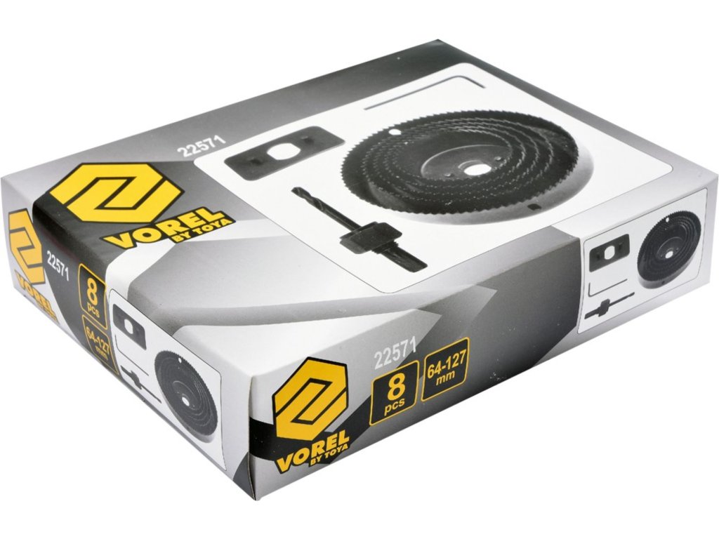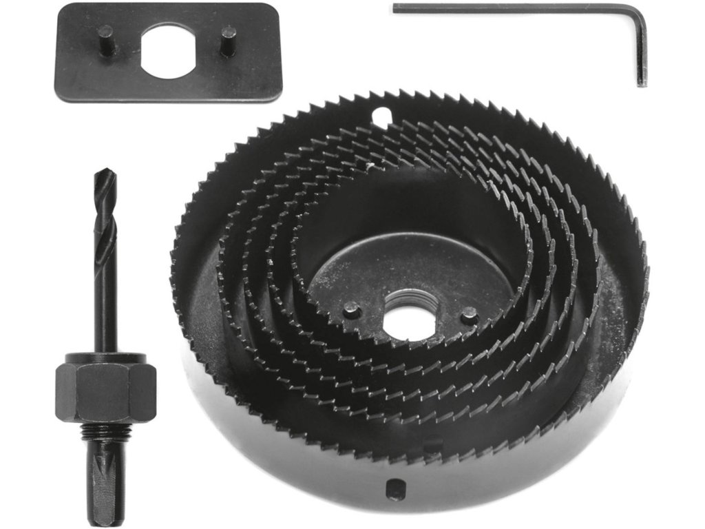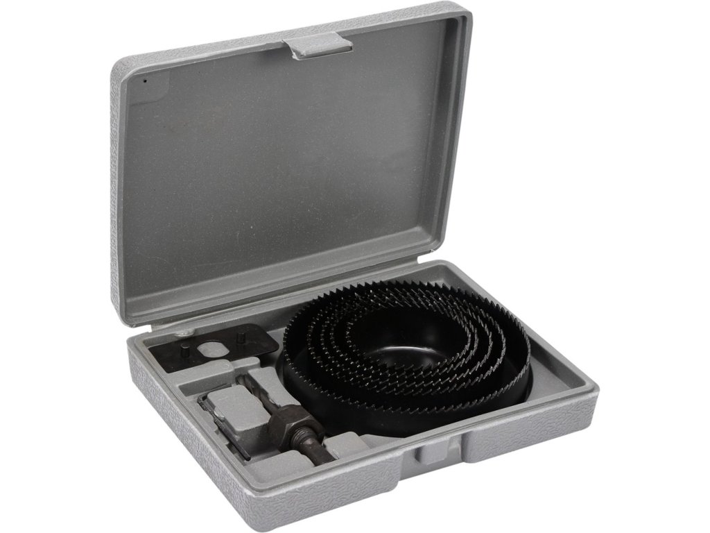 Sada vrtacích korunek do dřeva s průměry 64 - 127 mm.