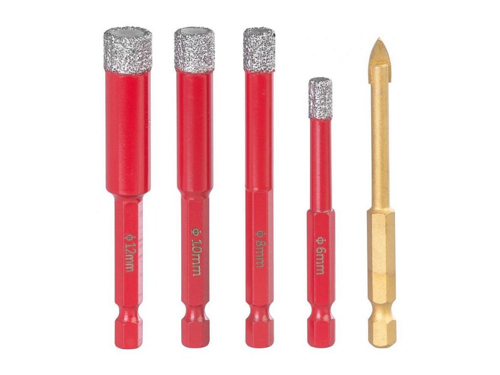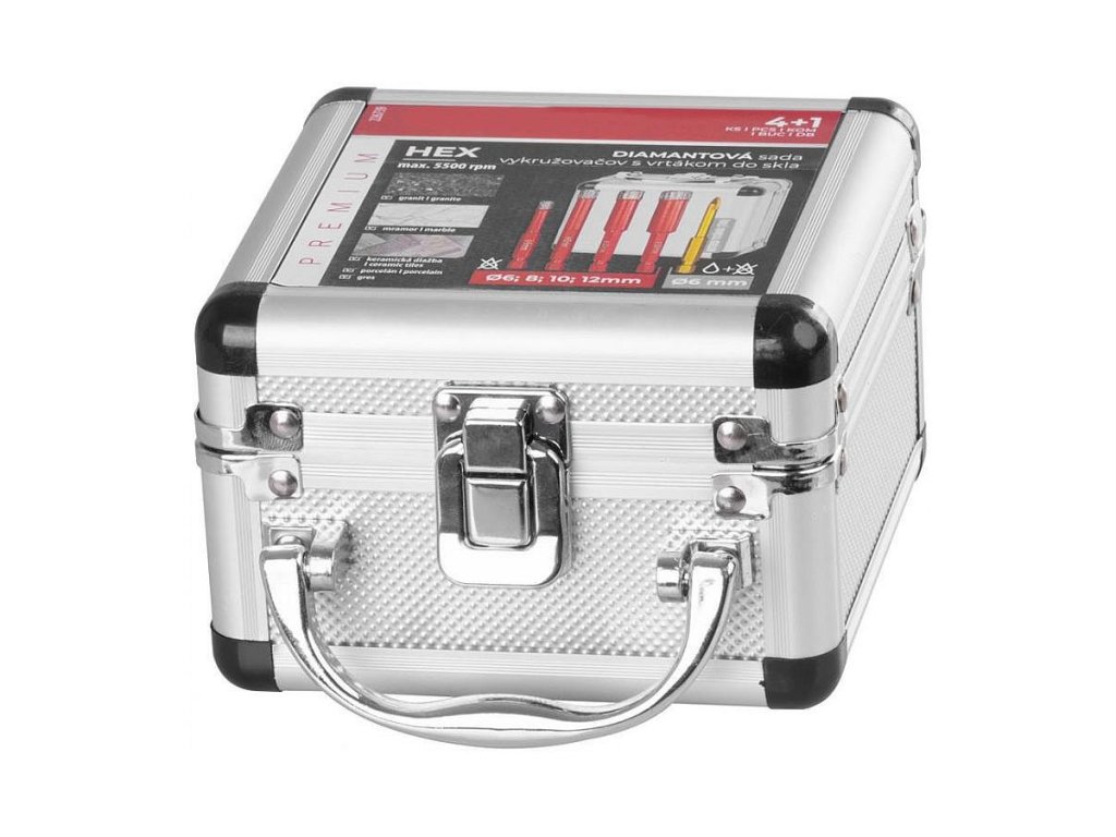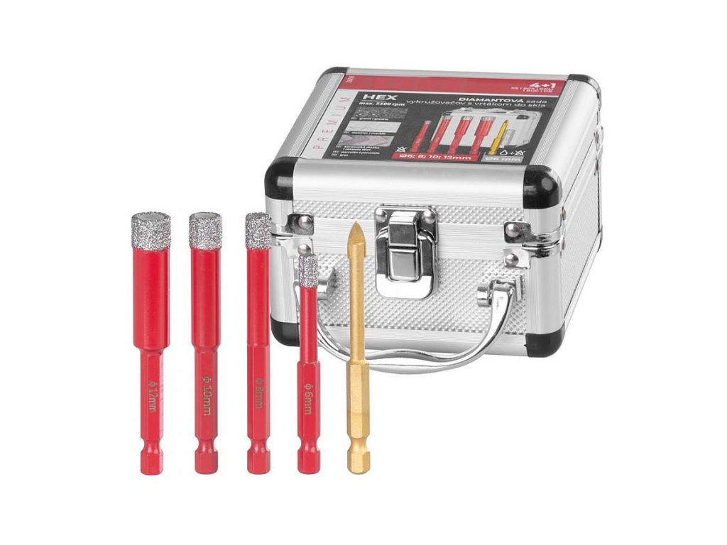 Sada vyřezávačů Premium, 6-8-10-12 mm, HEX, 6 mm vrták do skla, diamant, korunky, professional
