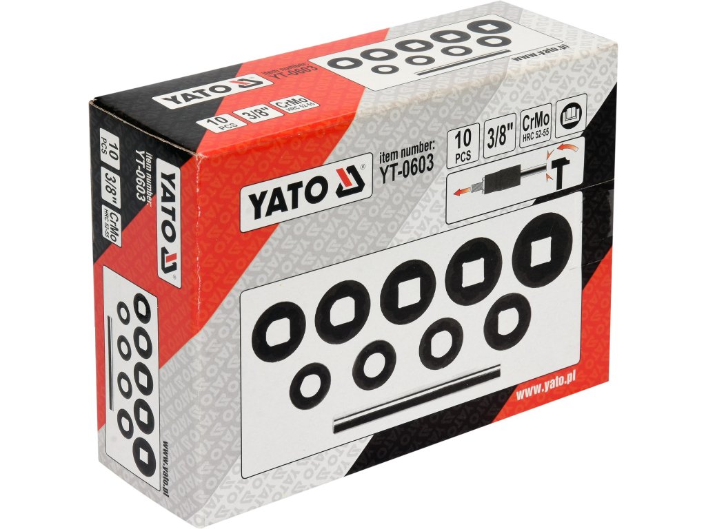 Sada je zhotovena z kvalitní CrMo oceli, s tvrdostí 52-55 HRC a je přehledně uspořádána v plastovém kufříku.