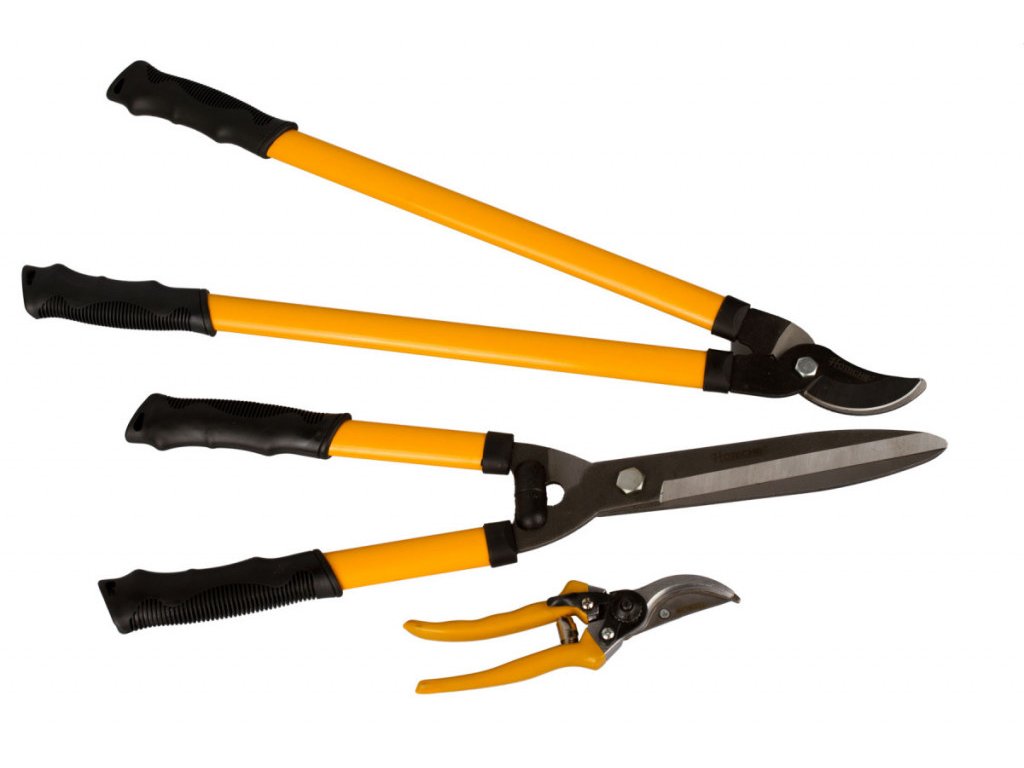 Sada zahradnických nůžek značky Hoteche, bez kterých se na své zahradě neobejdete. Zahrádkáři i chataři ocení nůžky na větve pro snadné střihání větví stromů a keřů s průměrem až 20 mm i nůžky na živý plot s průměrem střihu až 15 mm.