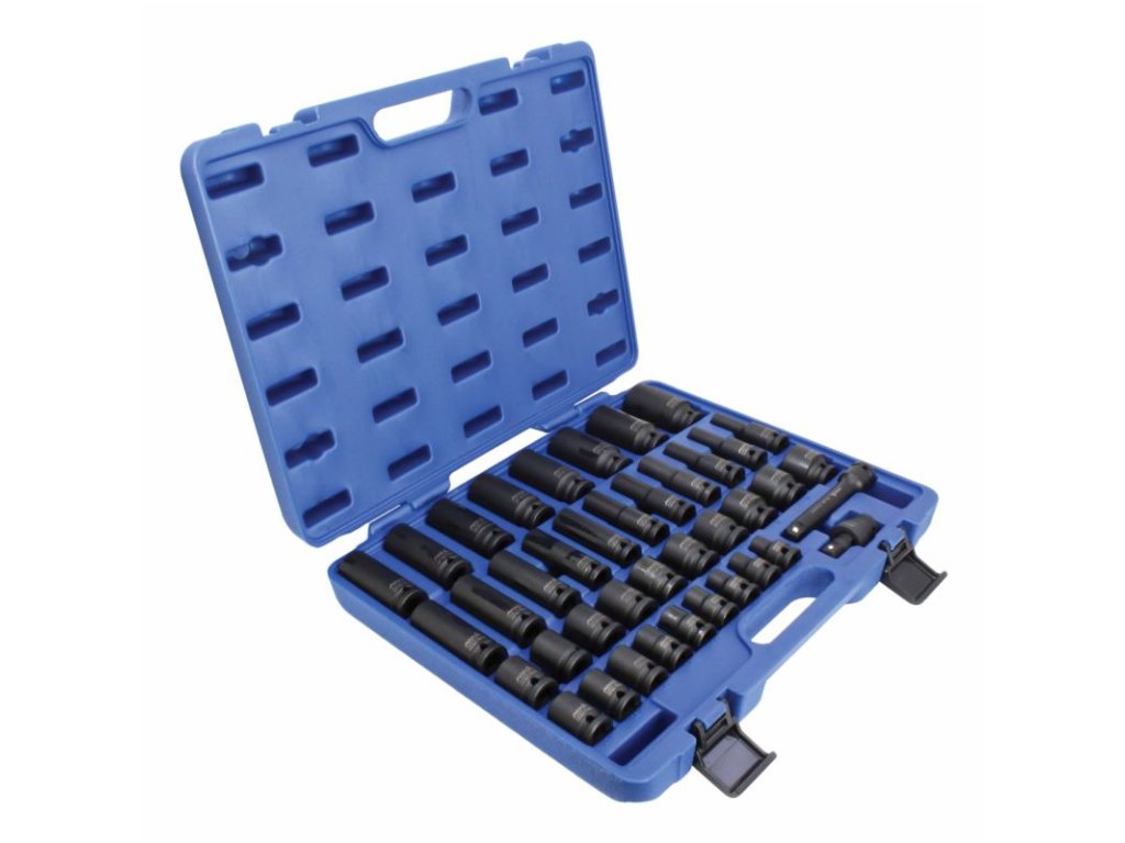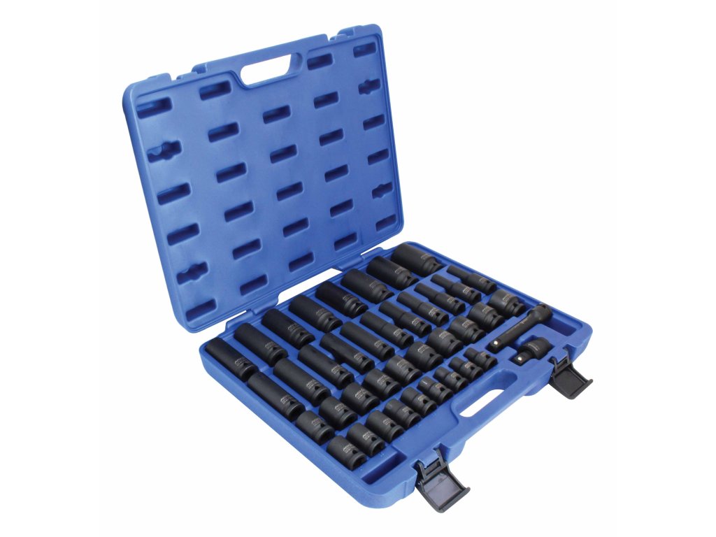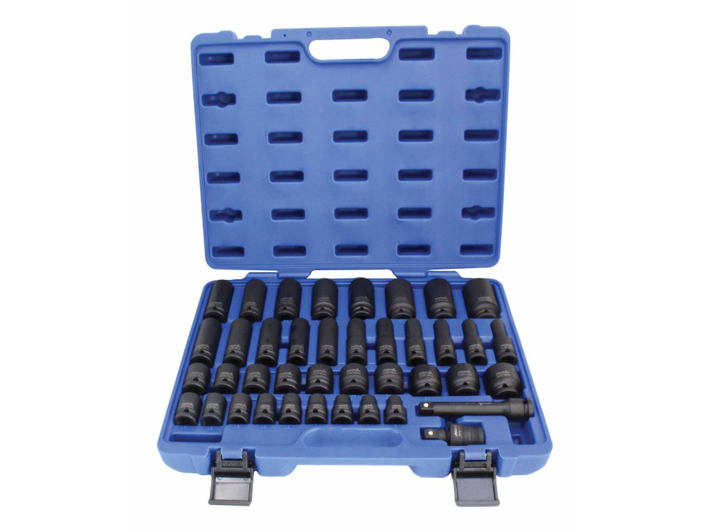 Sada zástrčných úderových hlavic, vodicí čtyřhran 1/2“, rozsah 9-30 mm, 40 ks, v plastovém kufru – ASTA A-HEX40F.