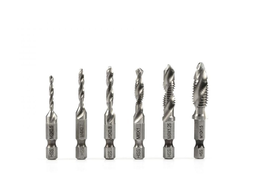 Skvělá pomůcka nejen pro všechny domácí kutily. Výjimečné tvrdé vrtáky se jen tak neopotřebují a můžete je použít na téměř všechny materiály (dřevo, kov, plast ... S vrtáky lze vrtat a zároveň vytvářet závit, tudíž ušetříte cenný čas i peníze za další zbytečné nářadí. Doporučujeme při práci chladit chladící kapalinou.