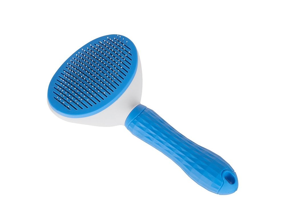 Ergonomický design pro maximální komfort - Pogumovaná rukojeť zajišťuje pevný a bezpečný úchop během celého procesu kartáčování. Ergonomicky tvarovaný design minimalizuje namáhání rukou a zápěstí, což umožňuje pohodlnou práci i při delších sezeních péče o srst.