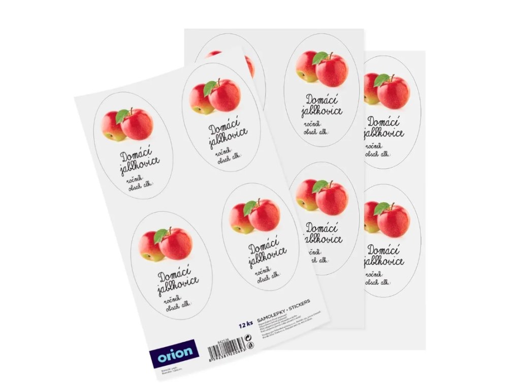 Samolepky na láhve, demižony nebo jiné nádoby s domácí jablkovicí označí i ozdobí váš domácí produkt.Můžete na nich vyznačit rok výroby a obsah alkoholu, stačí dopsat tyto údaje lihovou fixou na samolepku.