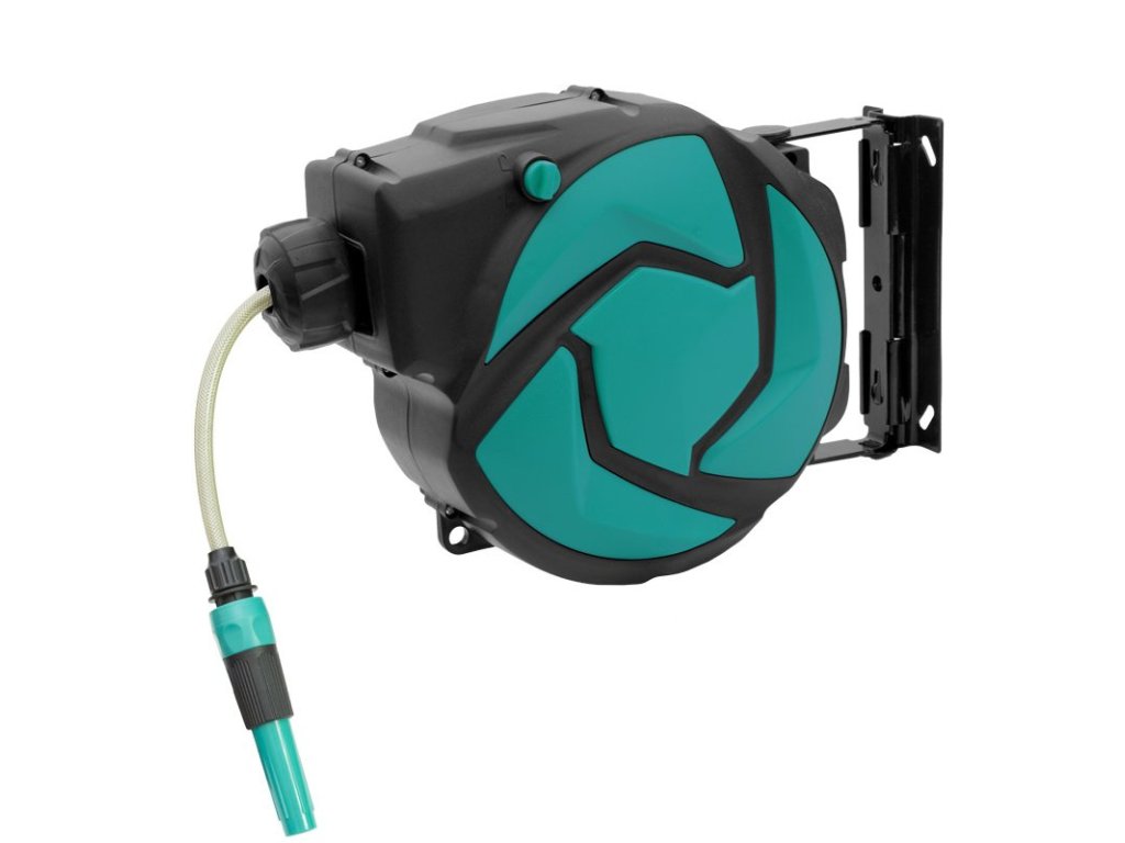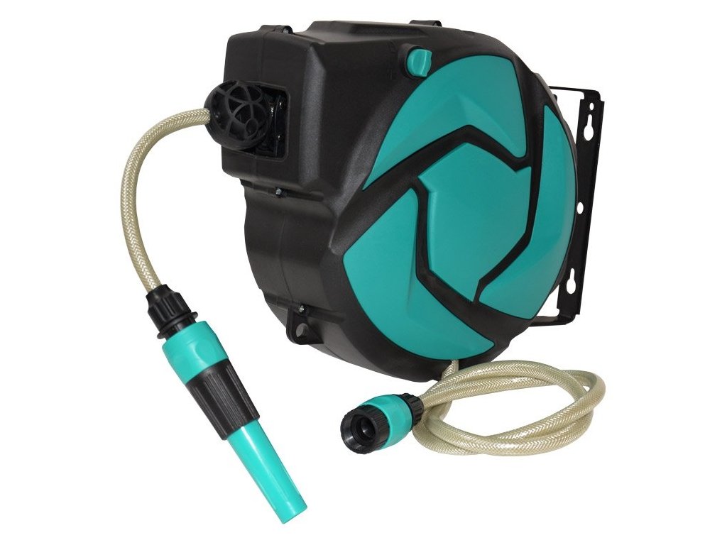 Profesionální automatický hadicový naviják nové generace je kompletně smontovaný. Skříň je vyrobena ze speciálního plastu na bázi PP, který je odolný proti nárazům i povětrnostním vlivům. Komfortní ovládání vytahování hadice vyžaduje minimální sílu a hadice je automaticky aretována v libovolné pozici díky patentované konstrukci. Po požadované délce vytažení se hadice uvolní jednoduchým povytažením, a následně se navíjí zpět pomocí integrovaného pružinového systému. Automatické navíjení je řízeno přesným vodicím systémem, který zabraňuje kroucení a zamotávání hadice.