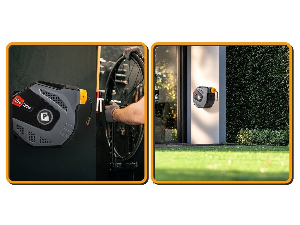 Hadice v délce 20 m spolu s přívodní hadicí v délce 2 m zajišťuje široký pracovní rádius pro pohodlné používání pneumatického nářadí. Otočná montážní konzola umožňuje rotaci o 180°, což vede hadici po nejkratší trajektorii a snižuje tření. Buben lze instalovat svisle i vodorovně podle uspořádání prostoru.