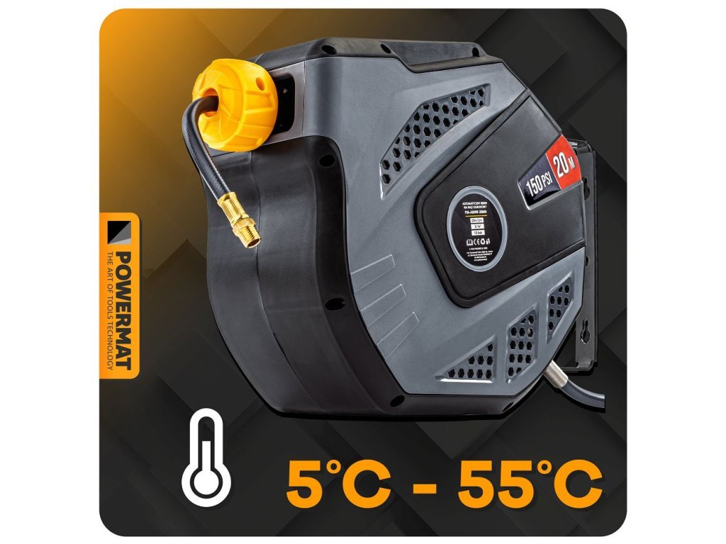 Samonavíjecí buben s pneumatickou hadicí 8×12 mm, 20 m - POWERMAT