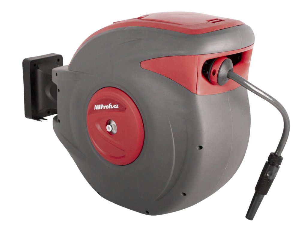 Hadice ukončena rychlospojkou pro připojení příslušenství, např. stříkací pistole. Z bubnu lze hadici snadno vytahovat a v požadovaném vytažení se automaticky aretuje. Popotažením hadice se západka aretace uvolní a hadice se navíjí zpět do bubnu.