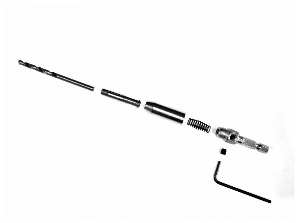 Vrták se skládá z pevné hlavní části s uchycením HEX do vrtačky, do títo části se upevní vrták pomocí šroubu. Druhá část se skláda s dorazu který je uložen v kovovém pouzdře. Doraz je na pružině a při vrtání zajede do kovové části pouzdra. Po vytvoření otvoru se opět vrátí do počáteční polohy. Doraz mí na boční straně podlouhlé otvory na odvod vyvrtaného materiálů. Hloubka dorazu se šteluje podle toho v jaké vzdálenosti upevníte vrták v hlavní části. Doraz lze seřídit od 5 do 14 mm a to v závislosti na délce použitého vrtáku.
