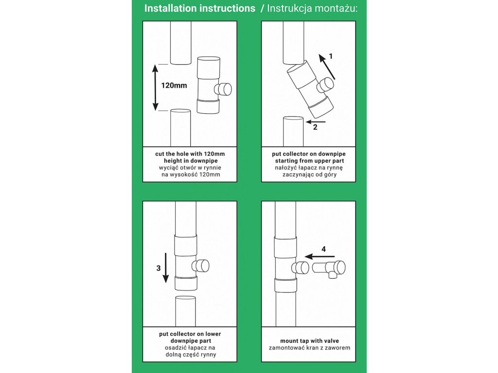 Kolektor lze použít pro PVC a kovové svody o průměru 90 mm.