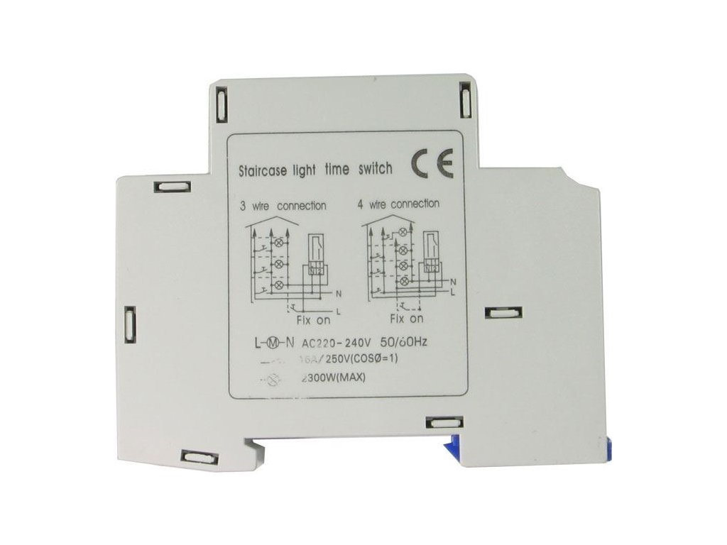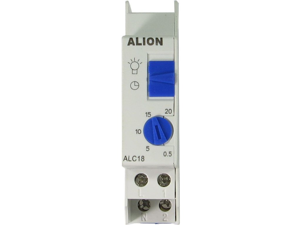 Schodišťový automat ALC18, doba sepnutí 0,5-20min Po stisku tlačítka zůstane sepnutý 0,5-20min. Vhodný k např. k ovládání světel na chodbách nebo ventilátorů na WC, v koupelnách apod.Doplňkové parametry