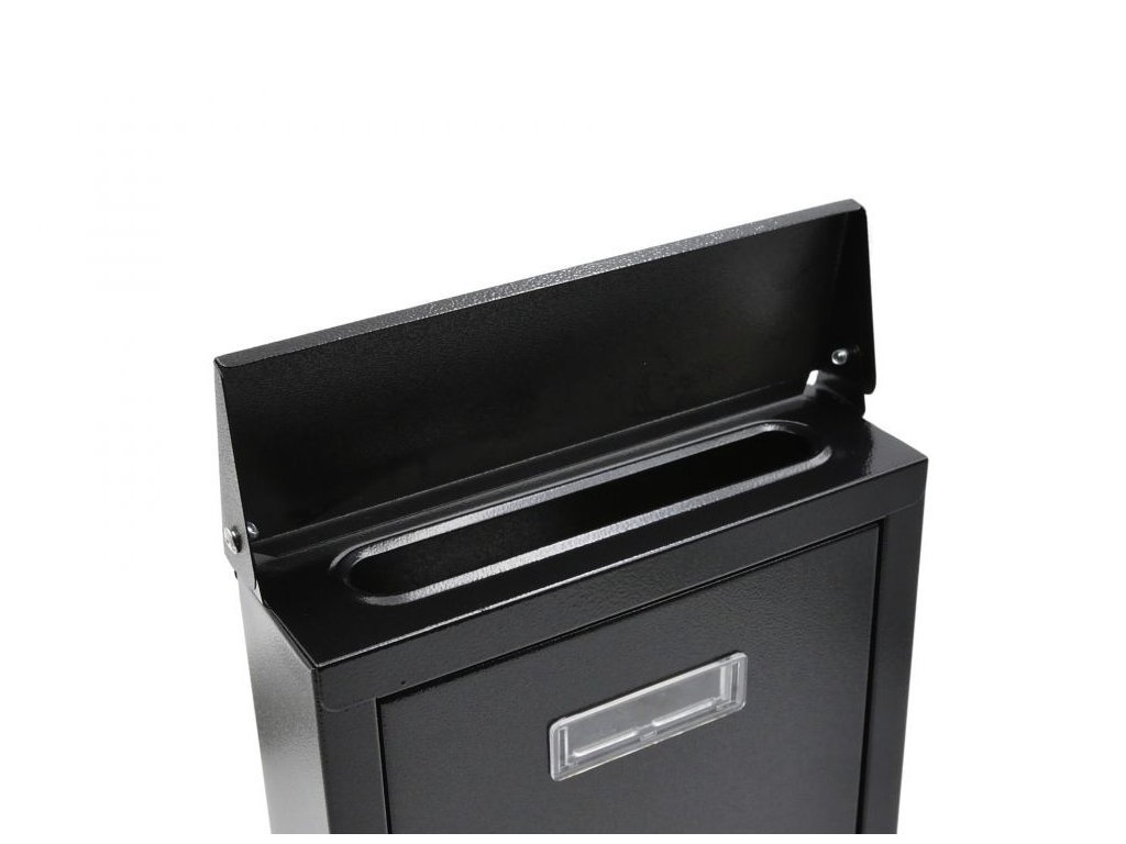 Poštovní schránka je vyrobena z pozinkované oceli, která ji dokonale chrání před nepříznivými povětrnostními podmínkami. Schránka o rozměrech 300x207x65mm má horní vhoz, který je krytý výklopnou klapkou a tím účinně chrání obsah schránky před deštěm, zatímco ventilační otvory umožňují přirozené odpařování vlhkosti, která může být uvnitř schránky.