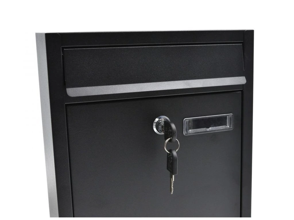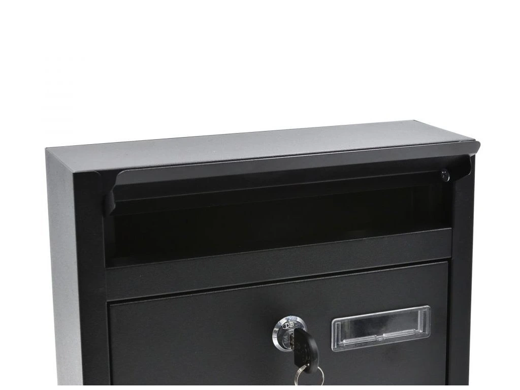 Poštovní schránka je vyrobena z pozinkované oceli, která ji dokonale chrání před nepříznivými povětrnostními podmínkami. Schránka má horní vhoz, který je krytý výklopnou klapkou a tím účinně chrání obsah schránky před deštěm, zatímco ventilační otvory umožňují přirozené odpařování vlhkosti, která může být uvnitř schránky.