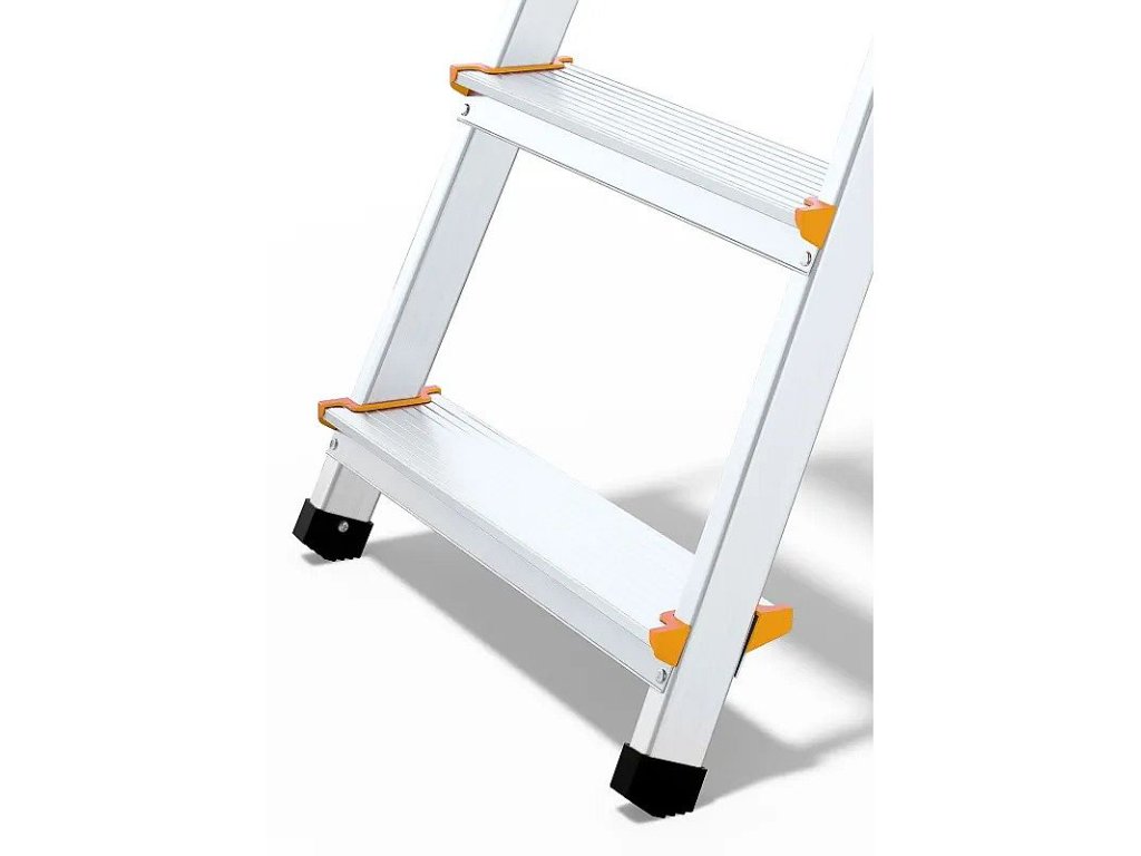 Žebřík je vyroben z odolného hliníku, odolného proti třískám a poškození.
