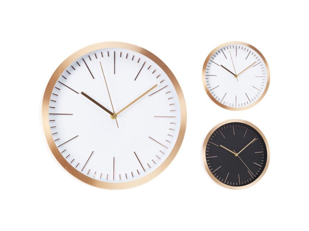 Nástěnné hodiny Koopman jsou elegantní a stylové hodiny, které budou ozdobou každé zdi ve vaší domácnosti. S průměrem 30 cm a krásnou zlatou barvou dodají tyto hodiny vaší výzdobě nádech půvabu. Hodinky jsou vyrobeny z plastu, a proto jsou lehké a snadno se zavěsí.