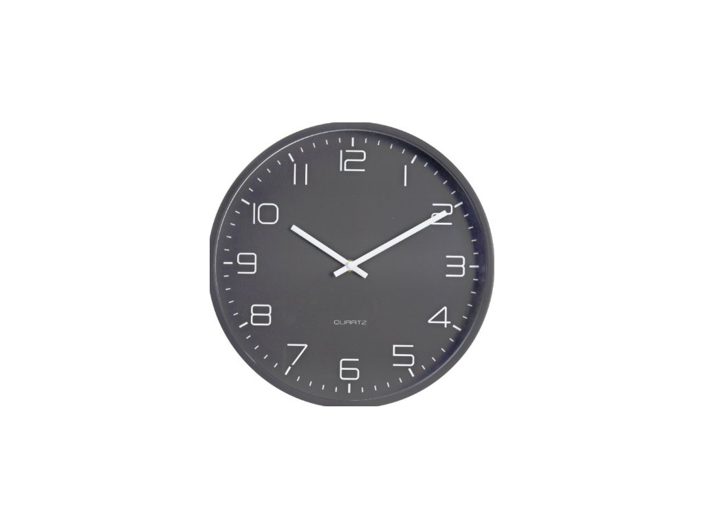 Klasické nástěnné hodiny- s kvalitním hodinovým strojkem QUARTZ- plastový rám v šedé barvě- napájení: 1x AA baterie (není součástí)- rozměry: 30,5 x 4,3 cm- barva: tmavě šedá