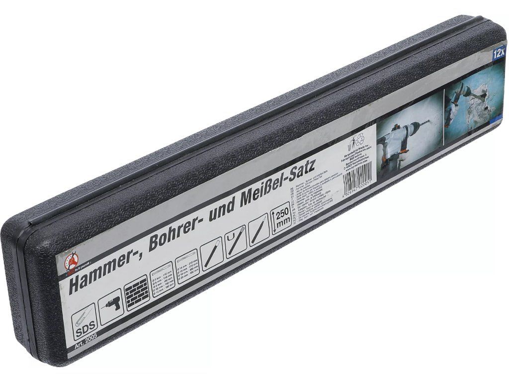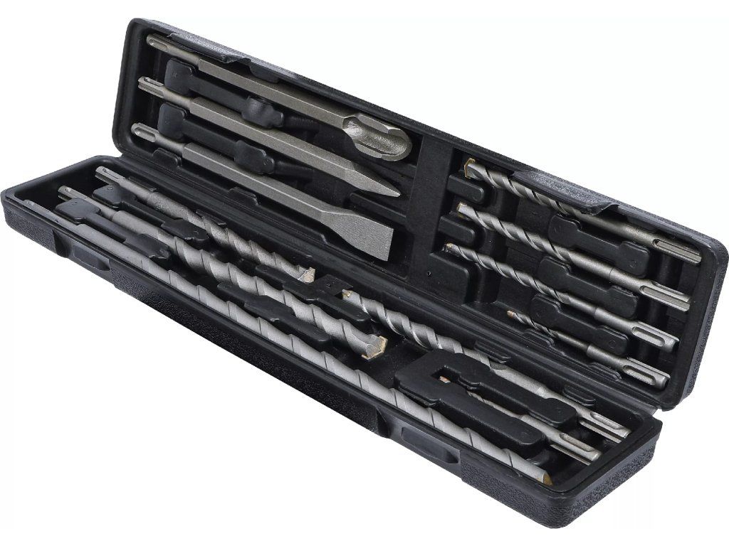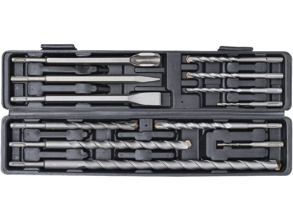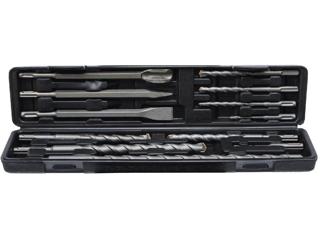 12dílná sada vrtáků a sekáčů s SDS dříkem je určena pro efektivní vrtání a sekání do betonu, zdiva a dalších stavebních materiálů.