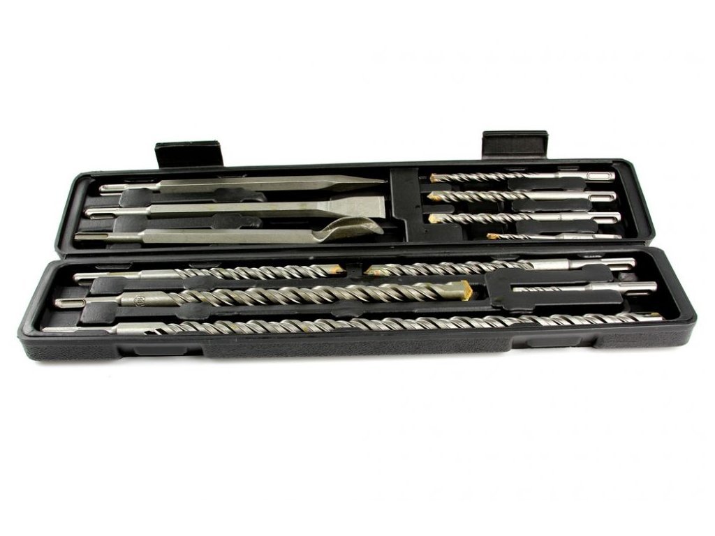 Sada sekáčů a vrtáků pro sekání a vrtání betonu, zdiva a podobných materiálů, pro elektro pneumatická vrtací a sekací kladiva s upínáním SDS Plus.