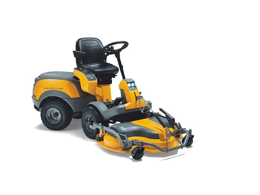Je vybaven třemi noži, elektricky nastavitelnou výškou sečení, kterou lze nastavit mezi 25 a 90 mm.