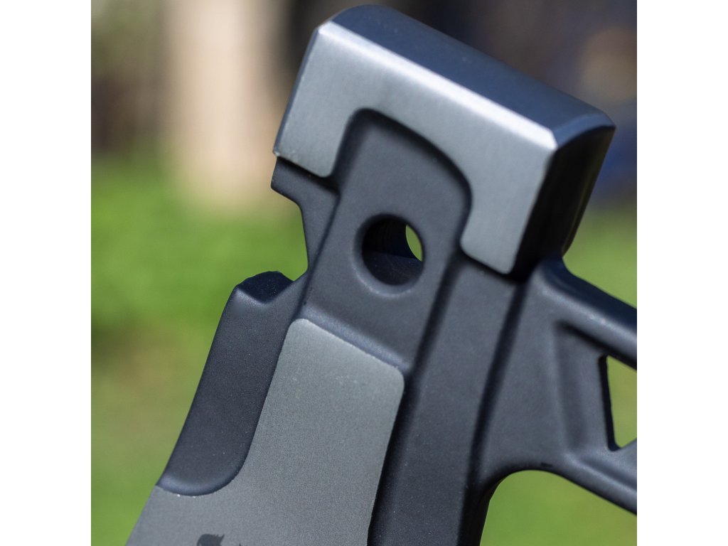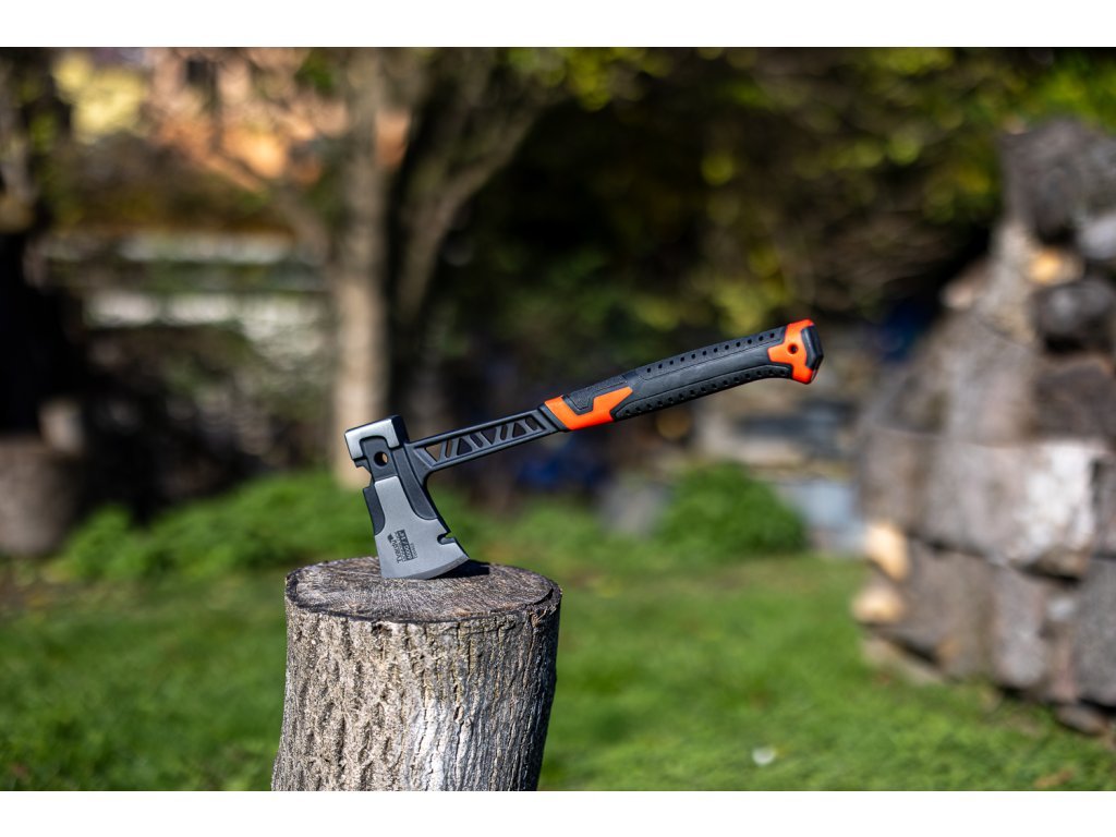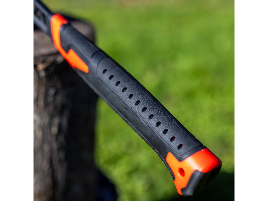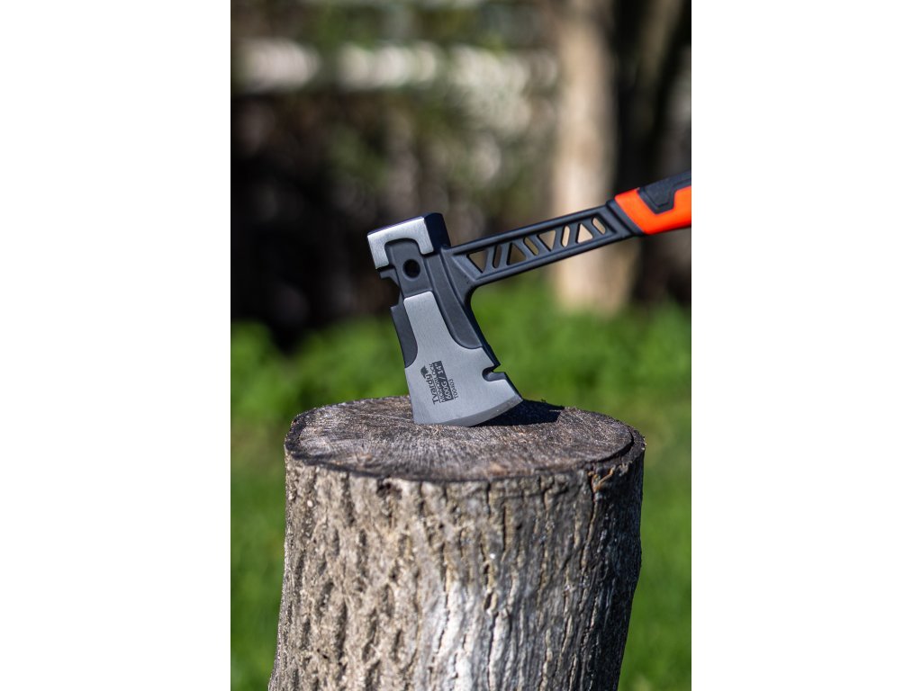 Čepel sekery zajišťuje efektivní sekání materiálů, zatímco plochá hlava umožňuje funkci kladiva při zatloukání kolíků, klínů a provádění silnějších úderů. Speciální zářez na vnitřní straně čepele navíc umožňuje využití i jako vytahovač hřebíků nebo páčidlo pro demontážní práce. Pokrývačská sekera je vyrobena s využitím pokročilé technologie MONOBLOCK s antivibrační technologií ANTI-SHOCK, což zaručuje maximální odolnost a komfort při dlouhodobém použití.