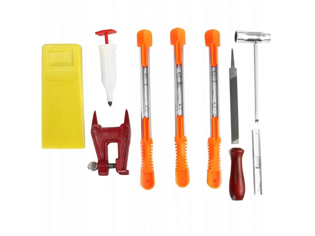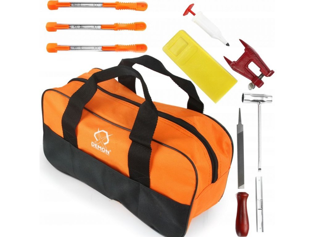 Sada nejužitečnějších a nejčastěji používaných nástrojů při práci s řetězovou pilou v tašce. Ideální pro použití v terénu.