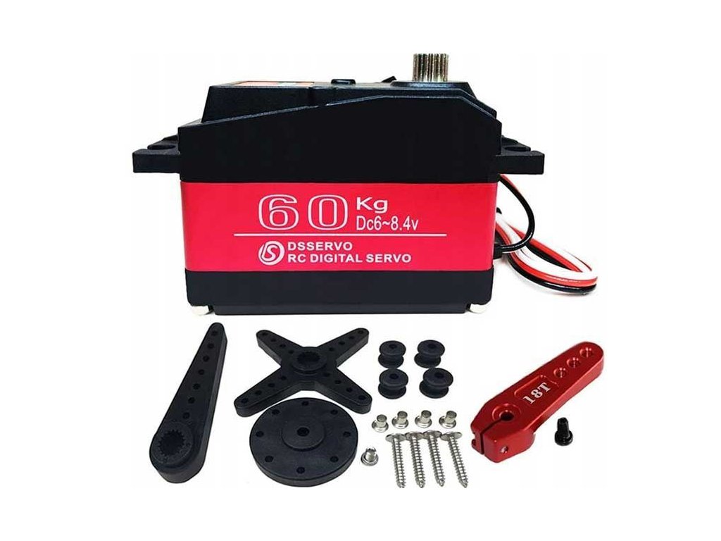 Servo DS5160 180° 60kg, 6-8,4V Servo s rotací, čtyřstupňová převodovka s mosazným pastorkem motoru, mosaznými ozubenými koly s ocelovými pastorky. Výstupní hřídel se otáčí v kuličkovém ložisku, těsnění obstarává ”O” kroužek. TřídílDoplňkové parametry