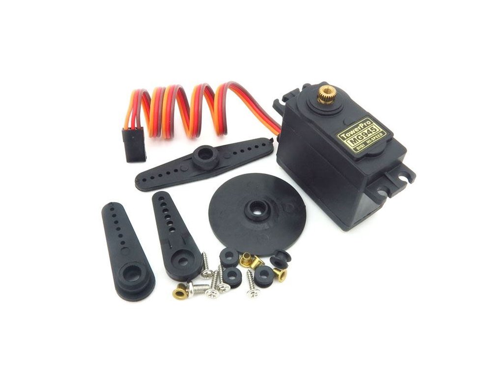 Servo s rotací, čtyřstupňová převodovka s mosazným pastorkem motoru. Pastorky na mosazných ozubených kolech jsou ocelové. Třídílná plastová skříň stažena čtyřmi šrouby. Výstupní hřídel se otáčí v bronzovém kluzném ložisku.Doplňkové parametry